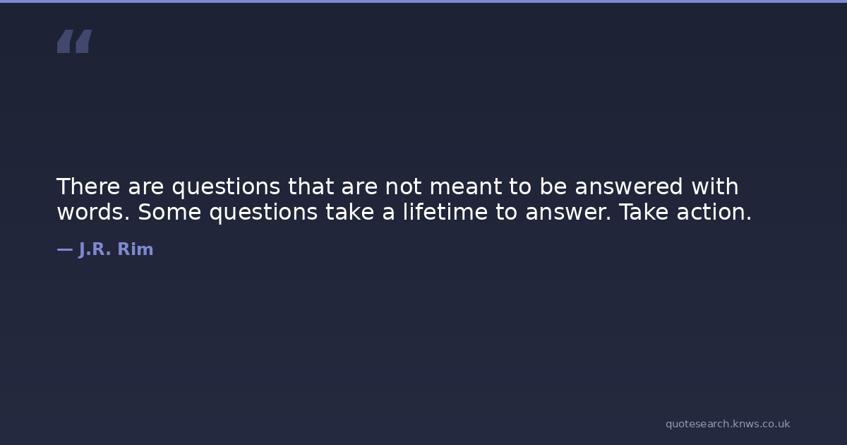 There are questions that are not meant to be answered with words. Some questions take a lifetime to answer. Take action.