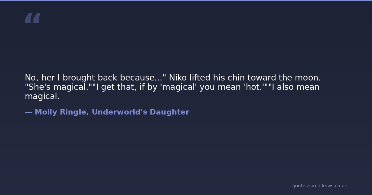 No, her I brought back because..." Niko lifted his chin toward the moon. "She's magical.""I get that, if by 'magical' you mean 'hot.'""I also mean magical.