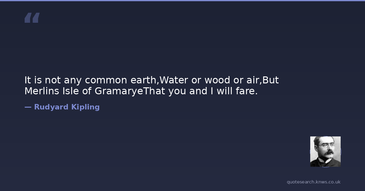 It is not any common earth,Water or wood or air,But Merlins Isle of GramaryeThat you and I will fare.