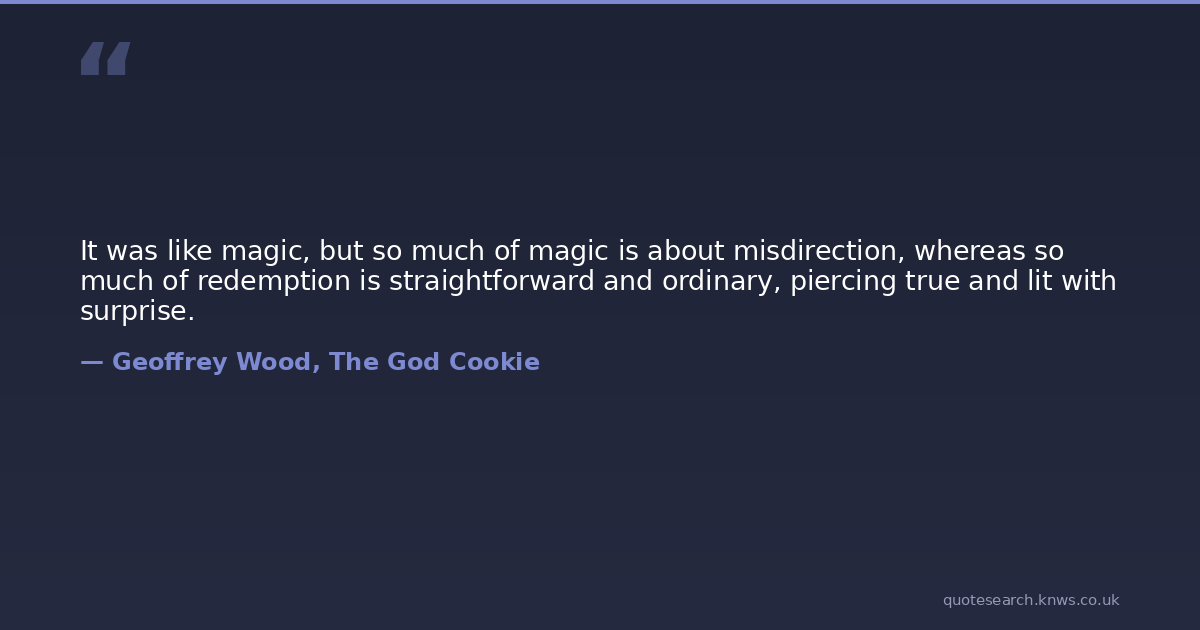 It was like magic, but so much of magic is about misdirection, whereas so much of redemption is straightforward and ordinary, piercing true and lit with surprise.