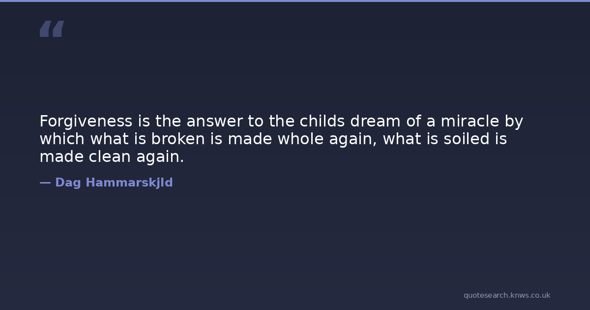 Forgiveness is the answer to the childs dream of a miracle by which what is broken is made whole again, what is soiled is made clean again.