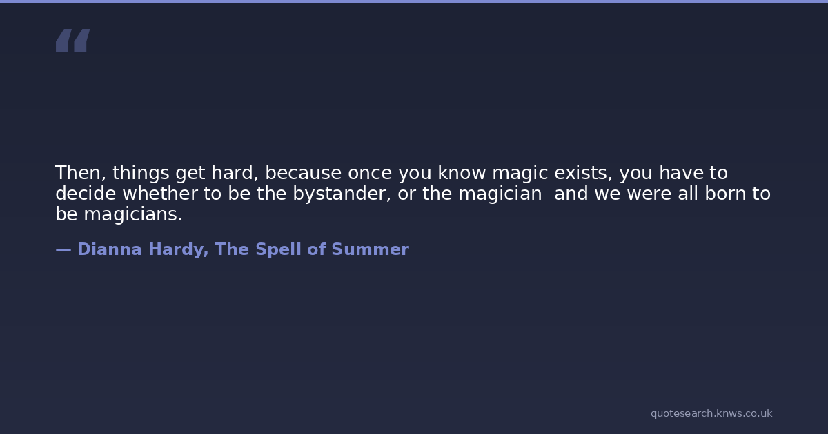 Then, things get hard, because once you know magic exists, you have to decide whether to be the bystander, or the magician and we were all born to be magicians.