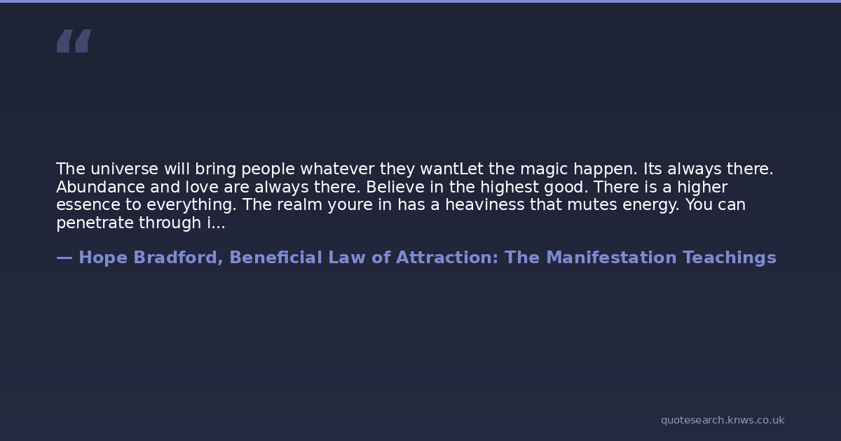 Hope Bradford, Beneficial Law of Attraction: The Manifestation Teachings.