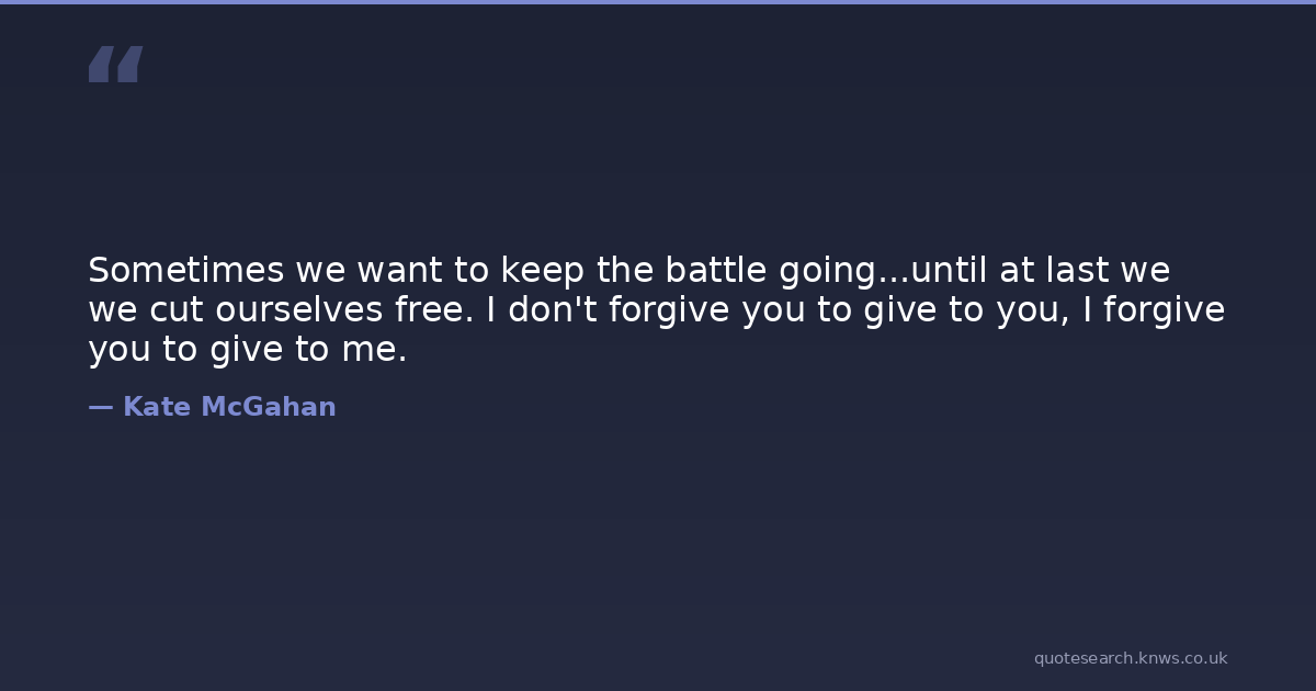 Sometimes we want to keep the battle going...until at last we we cut ourselves free. I don't forgive you to give to you, I forgive you to give to me.