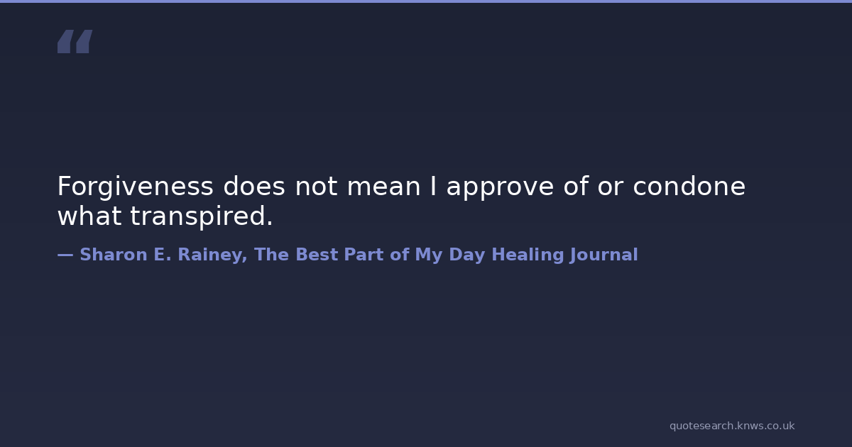 Forgiveness does not mean I approve of or condone what transpired.