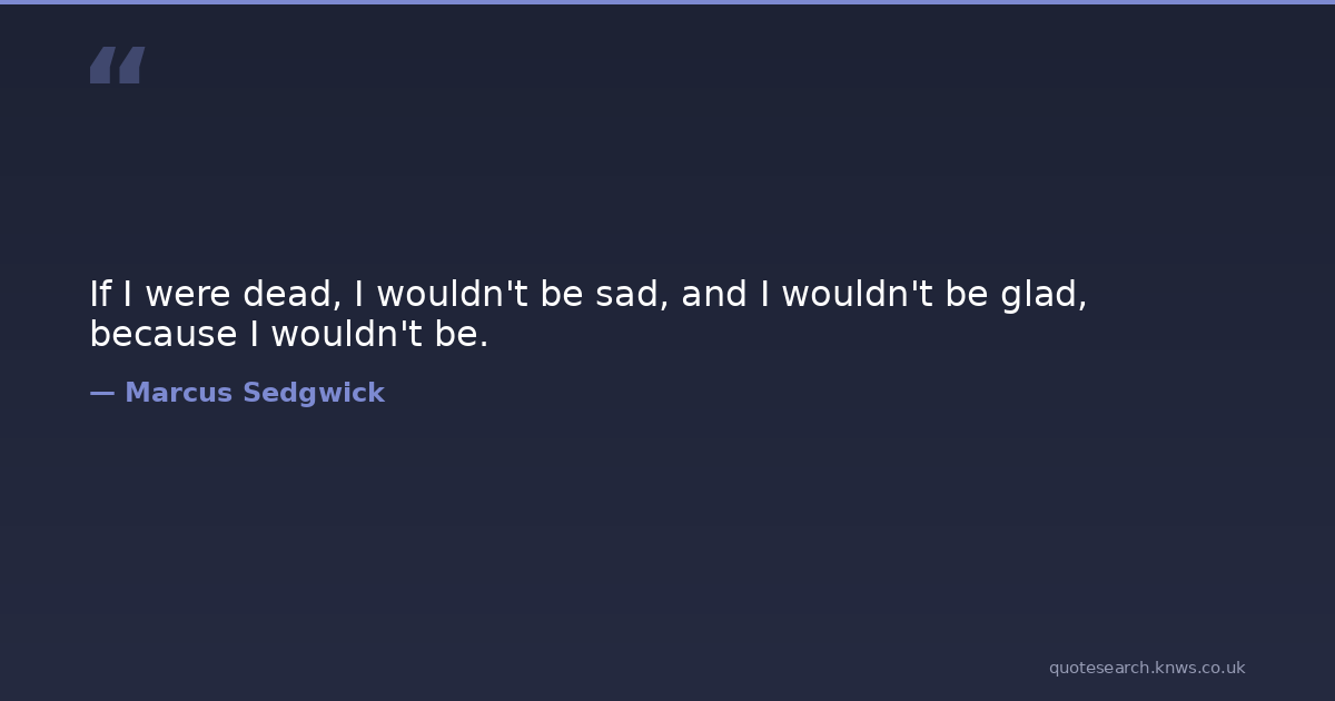 If I were dead, I wouldn't be sad, and I wouldn't be glad, because I wouldn't be. gothic poem Download Image Share on X Share on Facebook Copy Link