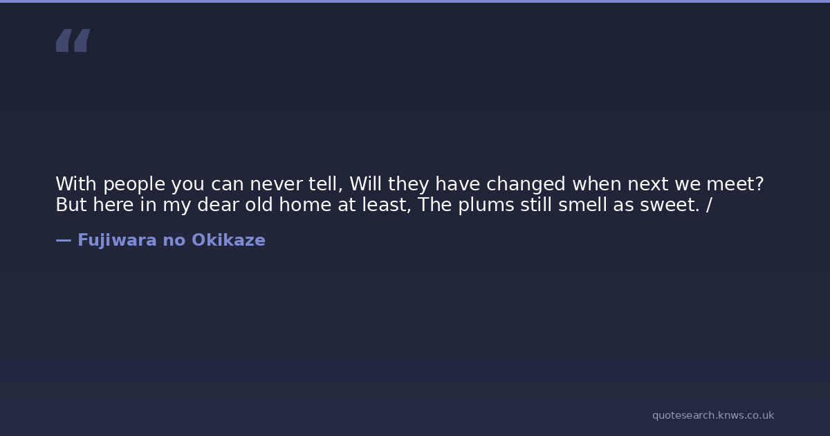 With people you can never tell, Will they have changed when next we meet? But here in my dear old home at least, The plums still smell as sweet. /