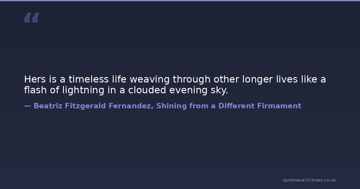 Hers is a timeless life weaving through other longer lives like a flash of lightning in a clouded evening sky.