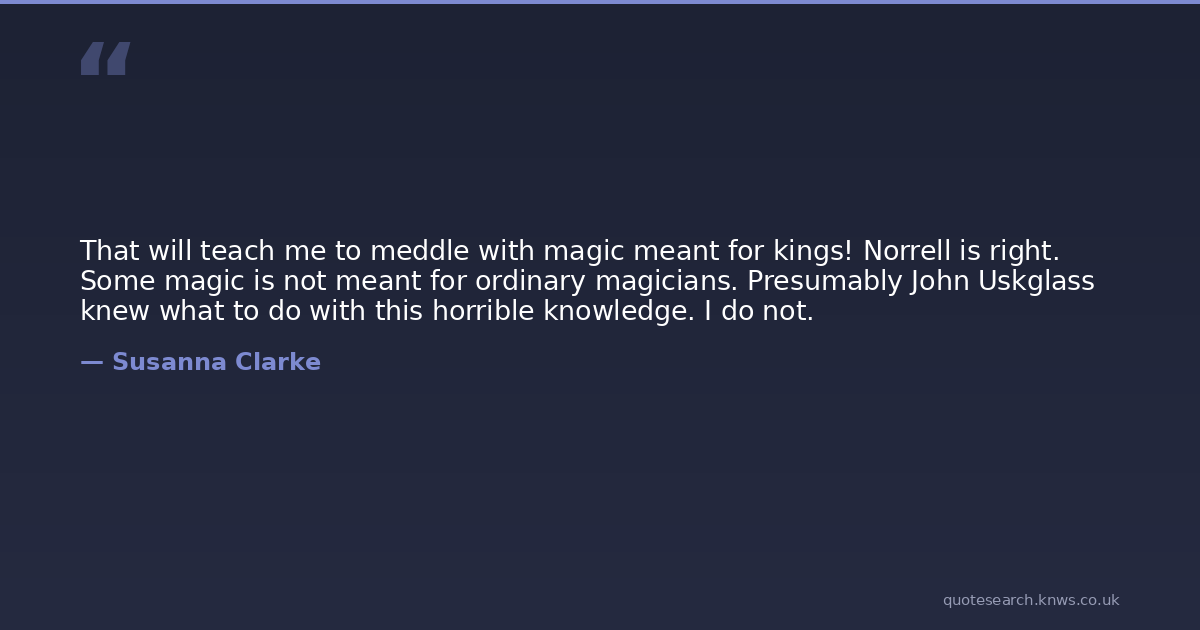That will teach me to meddle with magic meant for kings! Norrell is right. Some magic is not meant for ordinary magicians. Presumably John Uskglass knew what to do with this horrible knowledge. I do not.