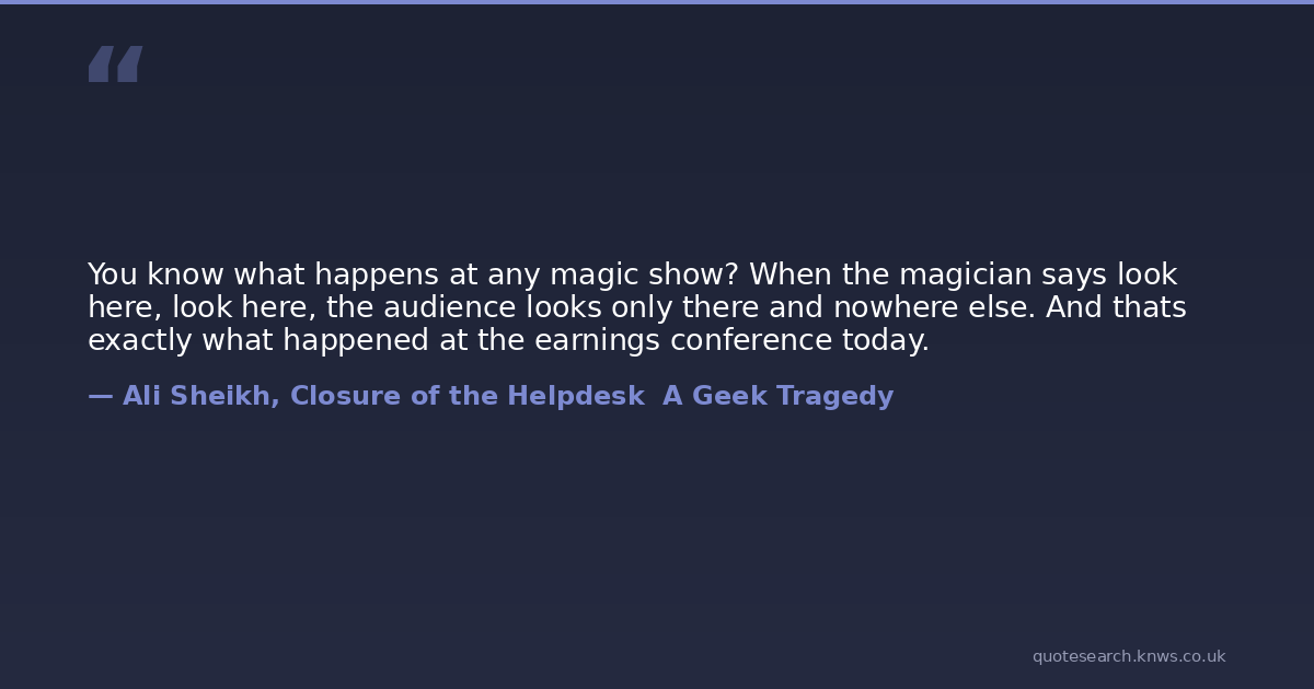 You know what happens at any magic show? When the magician says look here, look here, the audience looks only there and nowhere else. And thats exactly what happened at the earnings conference today.