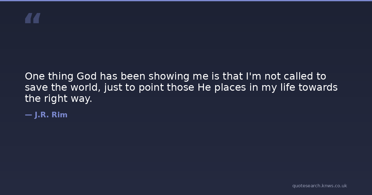 One thing God has been showing me is that I'm not called to save the world, just to point those He places in my life towards the right way.