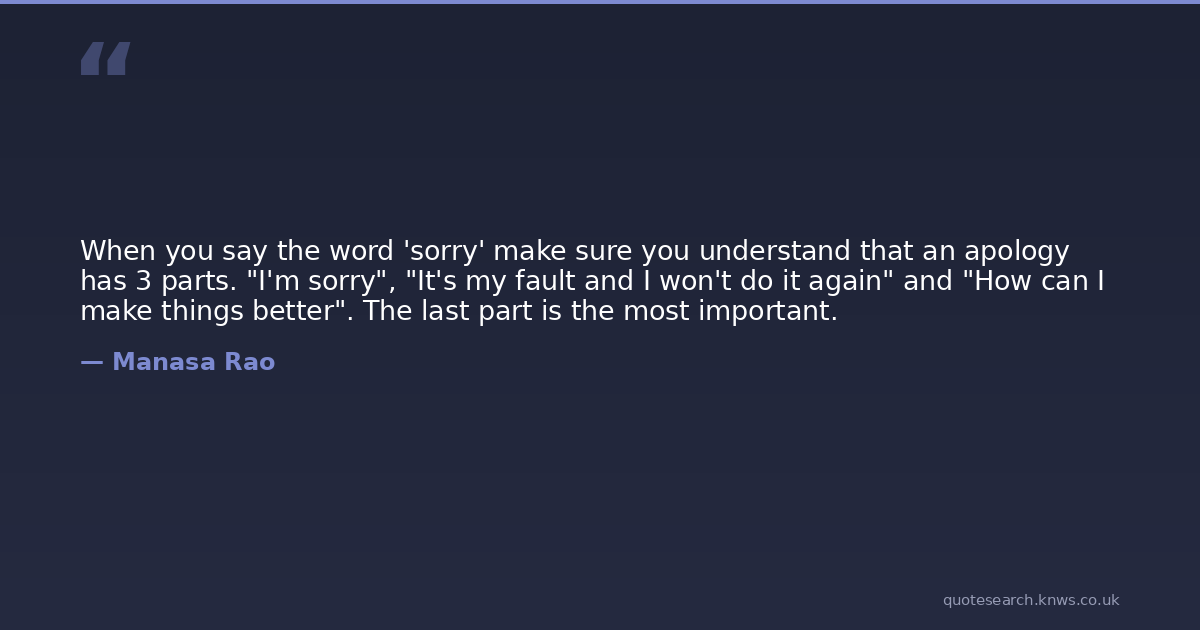 When you say the word 'sorry' make sure you understand that an apology has 3 parts. "I'm sorry", "It's my fault and I won't do it again" and "How can I make things better". The last part is the most important.