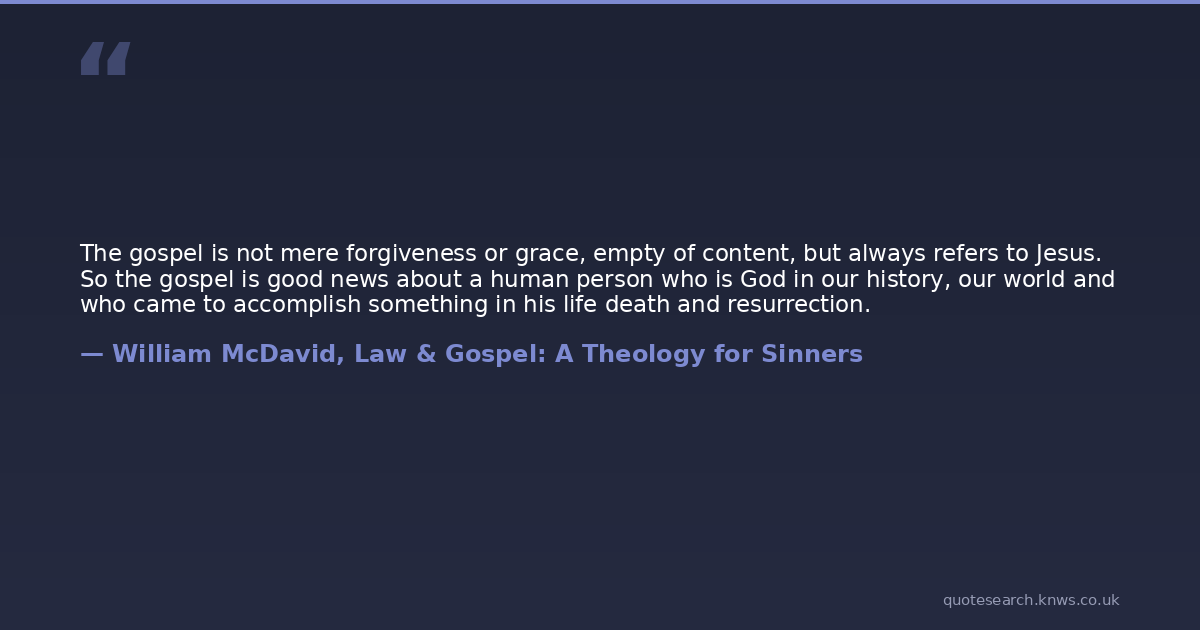 The gospel is not mere forgiveness or grace, empty of content, but always refers to Jesus. So the gospel is good news about a human person who is God in our history, our world and who came to accomplish something in his life death and resurrection.