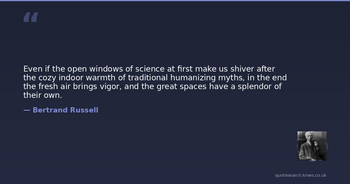 Even if the open windows of science at first make us shiver after the cozy indoor warmth of traditional humanizing myths, in the end the fresh air brings vigor, and the great spaces have a splendor of their own.