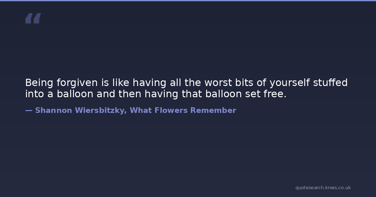 Being forgiven is like having all the worst bits of yourself stuffed into a balloon and then having that balloon set free.