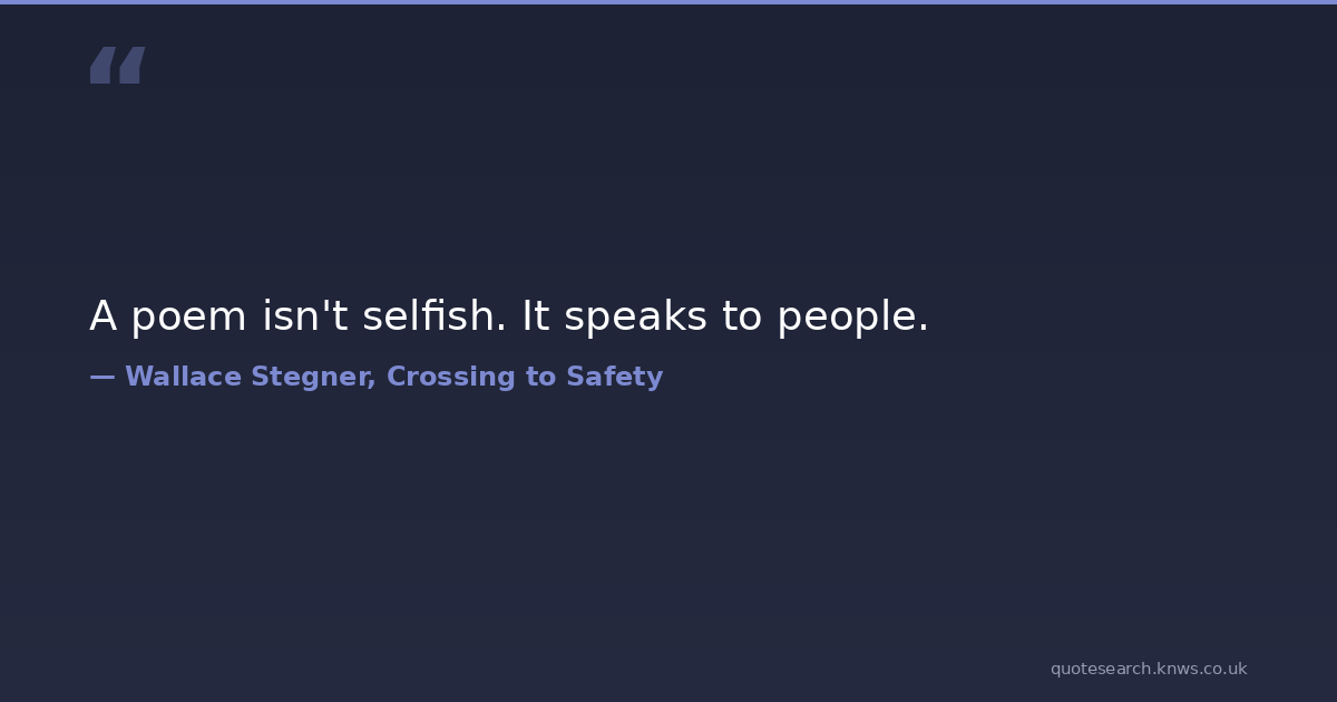 A poem isn't selfish. It speaks to people. poem Download Image Share on X Share on Facebook Copy Link