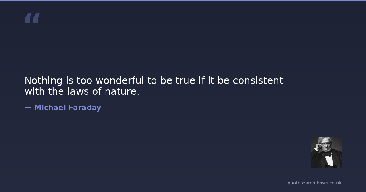 Nothing is too wonderful to be true if it be consistent with the laws of nature.