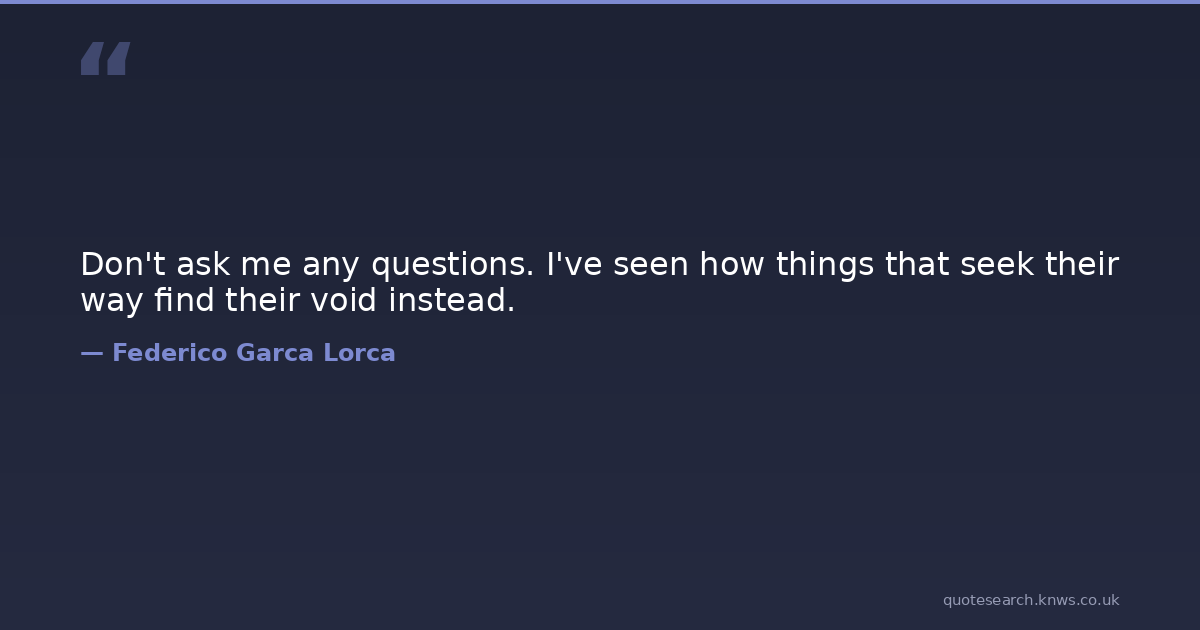 Don't ask me any questions. I've seen how things that seek their way find their void instead.