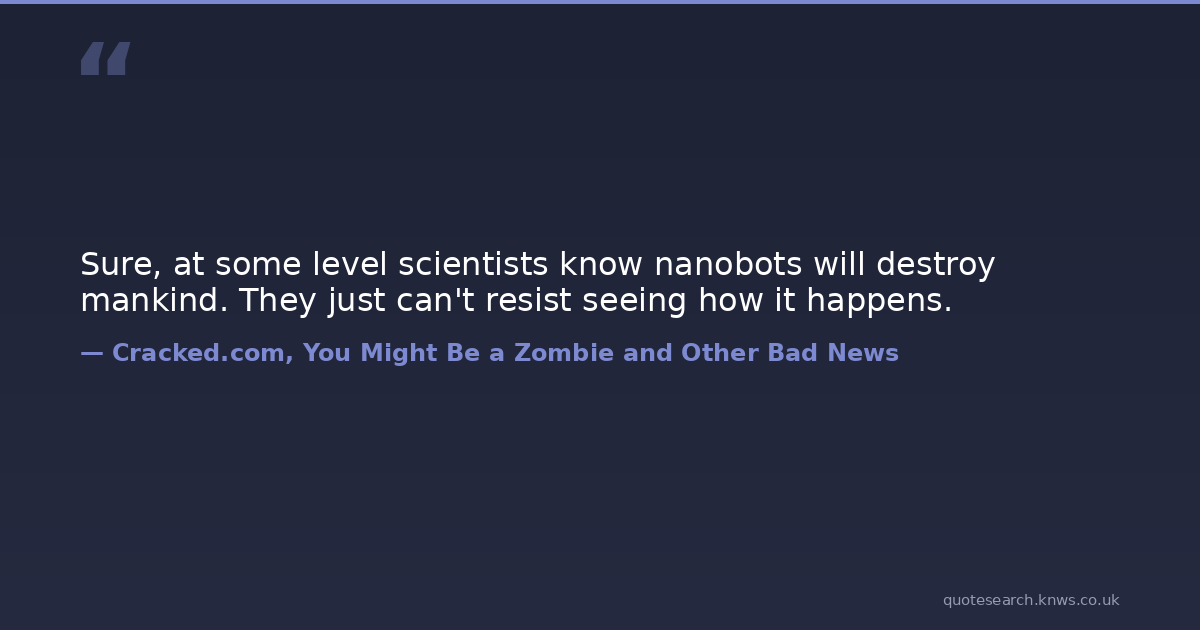 Sure, at some level scientists know nanobots will destroy mankind. They just can't resist seeing how it happens.