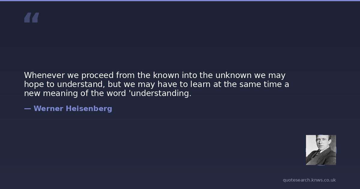Whenever we proceed from the known into the unknown we may hope to understand, but we may have to learn at the same time a new meaning of the word 'understanding.