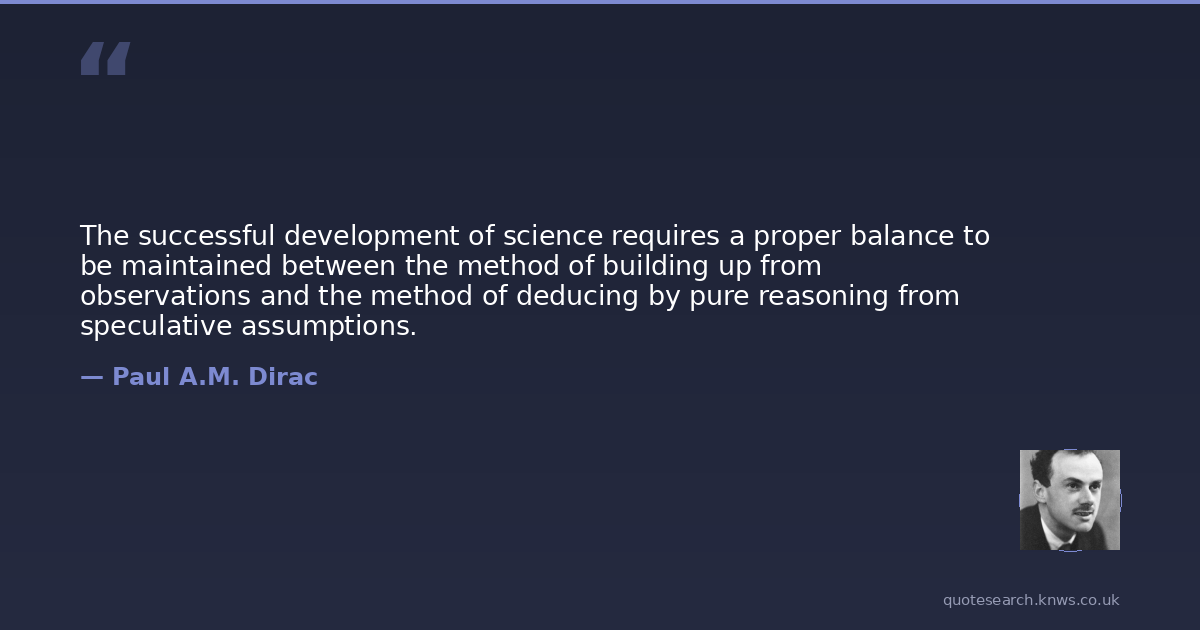 The successful development of science requires a proper balance to be maintained between the method of building up from observations and the method of deducing by pure reasoning from speculative assumptions.