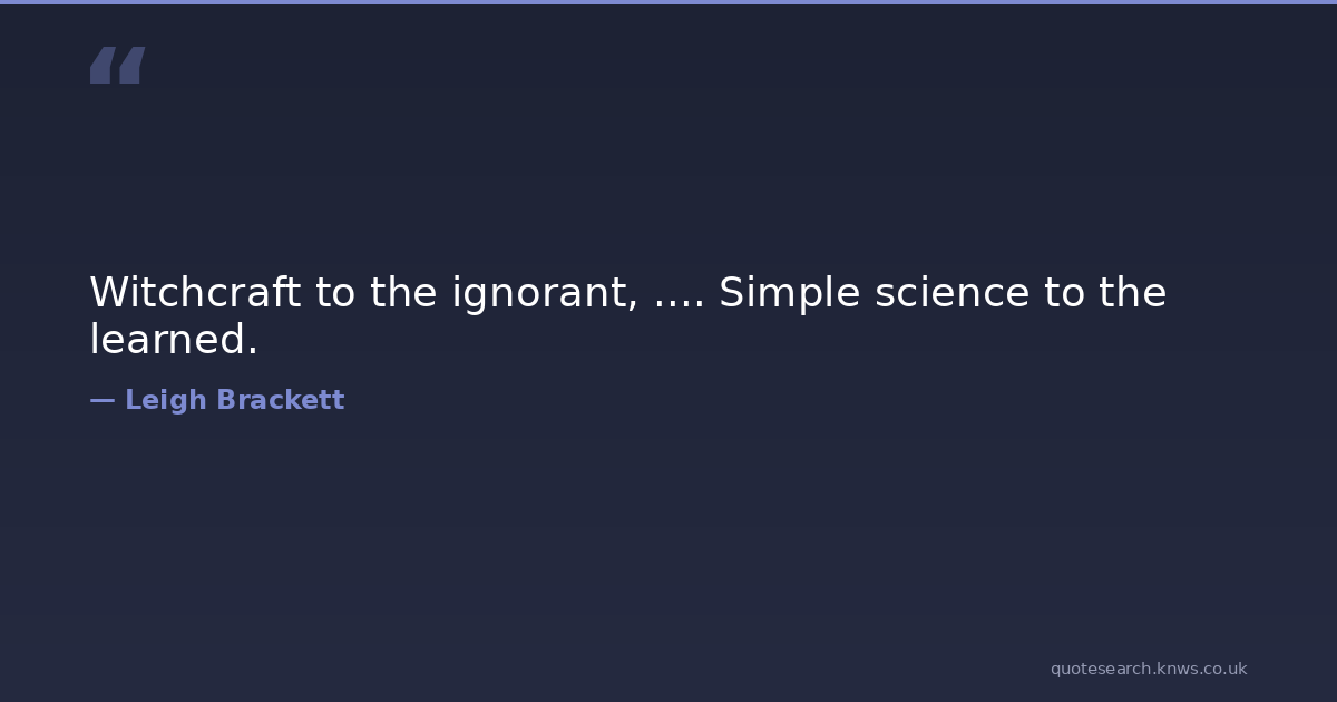 Witchcraft to the ignorant, .... Simple science to the learned. science Download Image Share on X Share on Facebook Copy Link