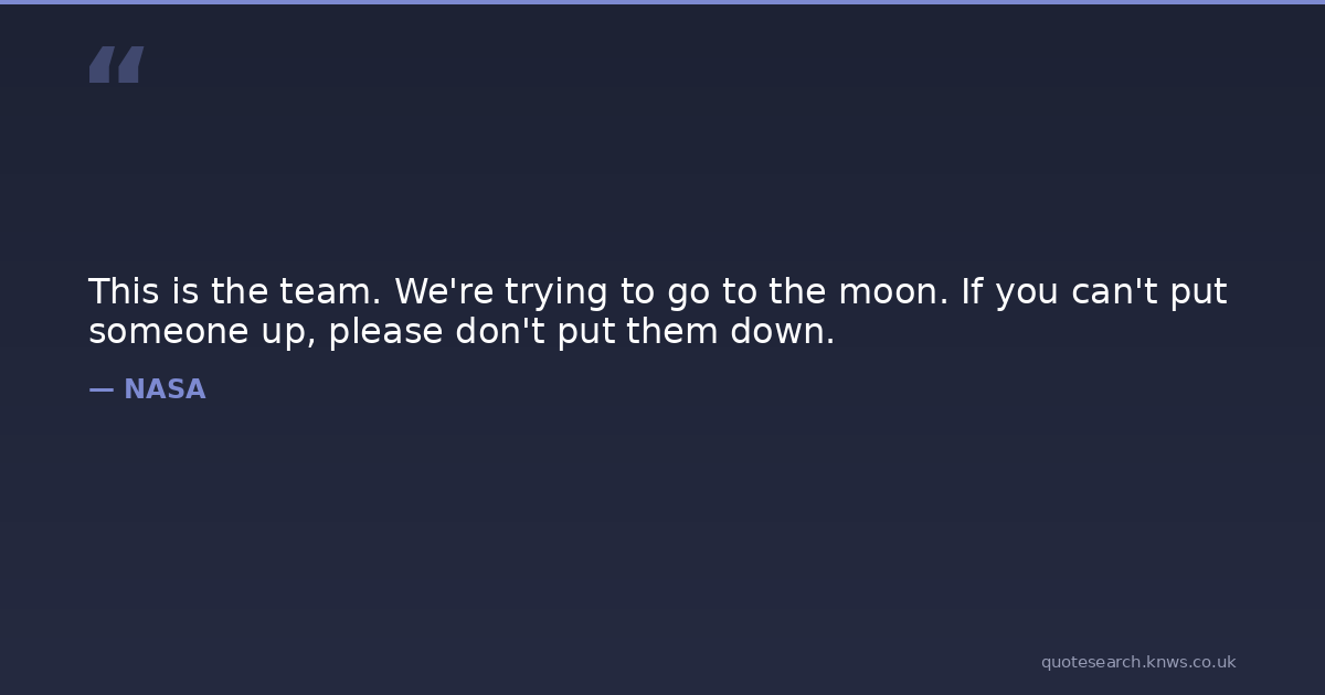 This is the team. We're trying to go to the moon. If you can't put someone up, please don't put them down.