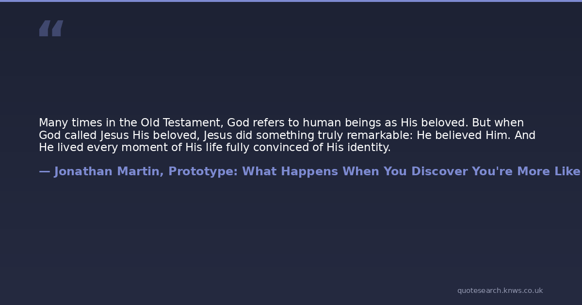 Many times in the Old Testament, God refers to human beings as His beloved. But when God called Jesus His beloved, Jesus did something truly remarkable: He believed Him. And He lived every moment of His life fully convinced of His identity.