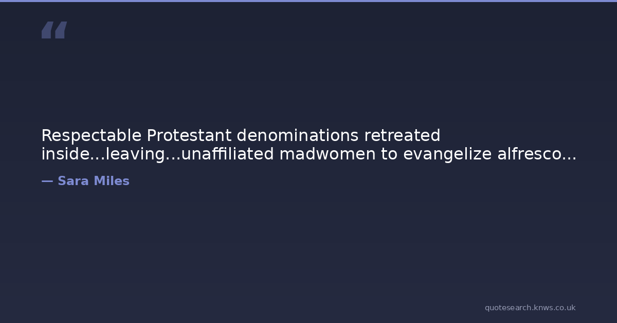 Respectable Protestant denominations retreated inside...leaving...unaffiliated madwomen to evangelize alfresco...