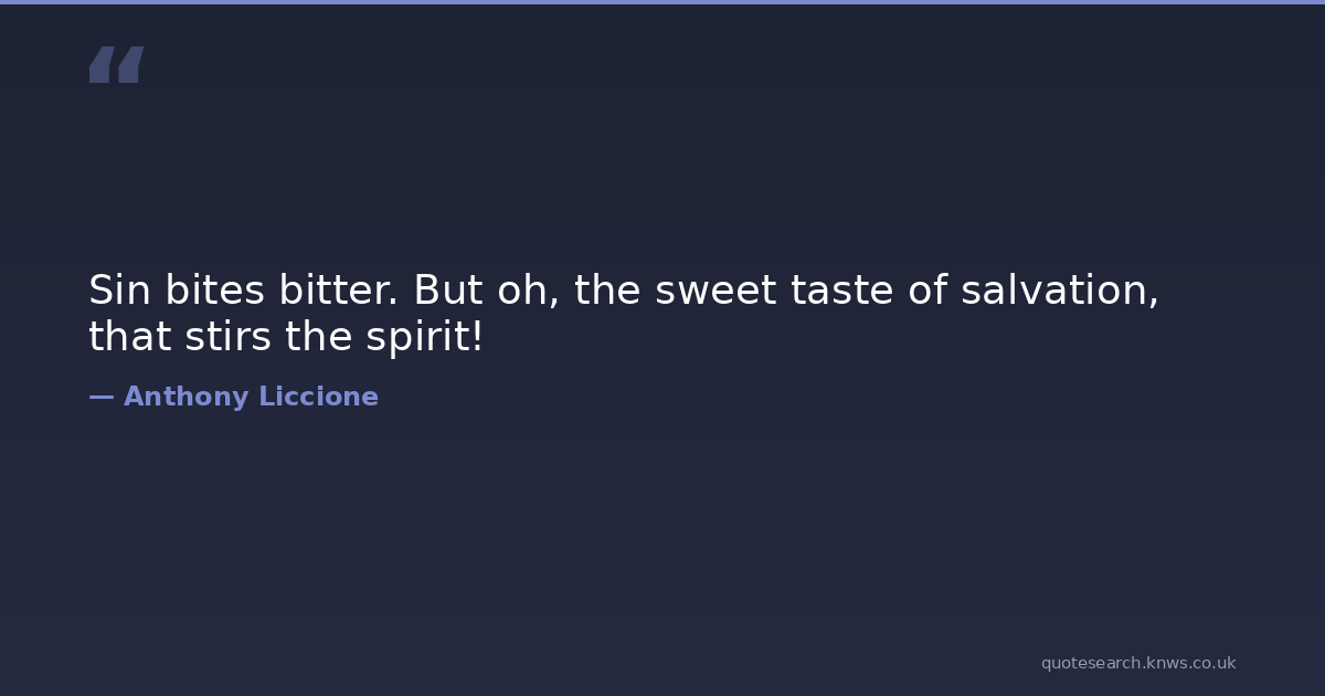 Sin bites bitter. But oh, the sweet taste of salvation, that stirs the spirit! bitter christianity covenant damned elect-sake excite faith harmony heaven hell hope jesus joyful lamb love move offering resurrection salvation saved sin stirs sweet taste Download Image Share on X Share on Facebook Copy Link