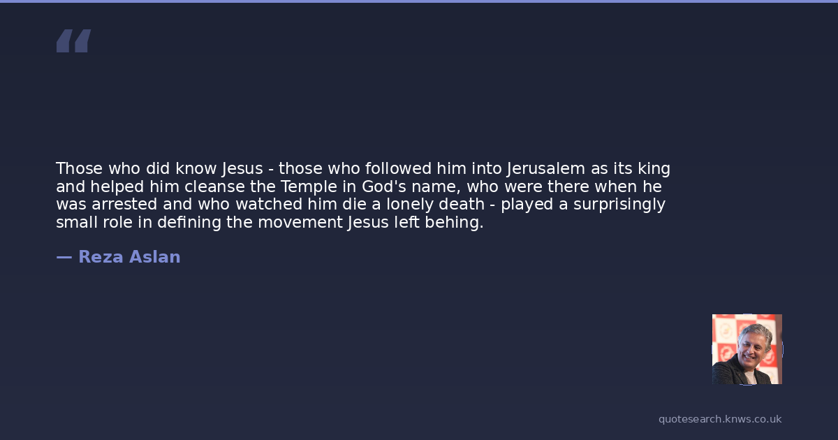 Those who did know Jesus - those who followed him into Jerusalem as its king and helped him cleanse the Temple in God's name, who were there when he was arrested and who watched him die a lonely death - played a surprisingly small role in defining the movement Jesus left behing.