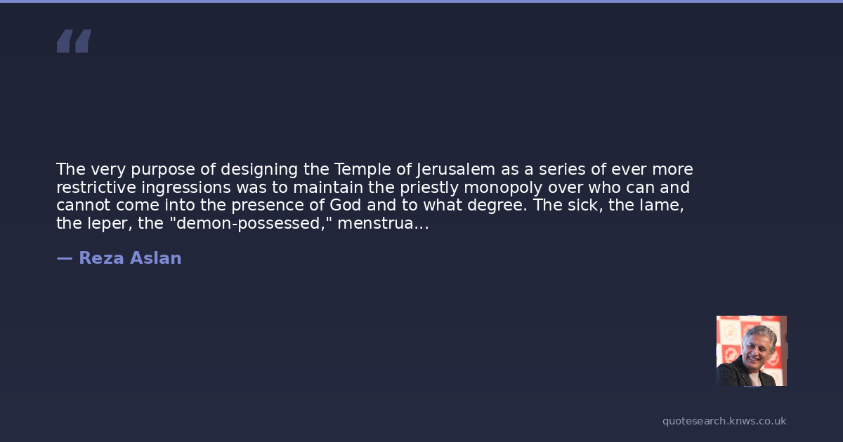 The very purpose of designing the Temple of Jerusalem as a series of ever more restrictive ingressions was to maintain the priestly monopoly over who can and cannot come into the presence of God and to what degree. The sick, the lame, the leper, the "demon-possessed," menstruating women, those with bodily discharges, those who had recently given birthnone of these were permitted to enter the Temple and take part in the rituals unless first purified according to the priestly code. With every leper cleansed, every paralytic healed, every demon cast out, Jesus was not only challenging that priestly code, he was invalidating the very purpose of the priesthood.