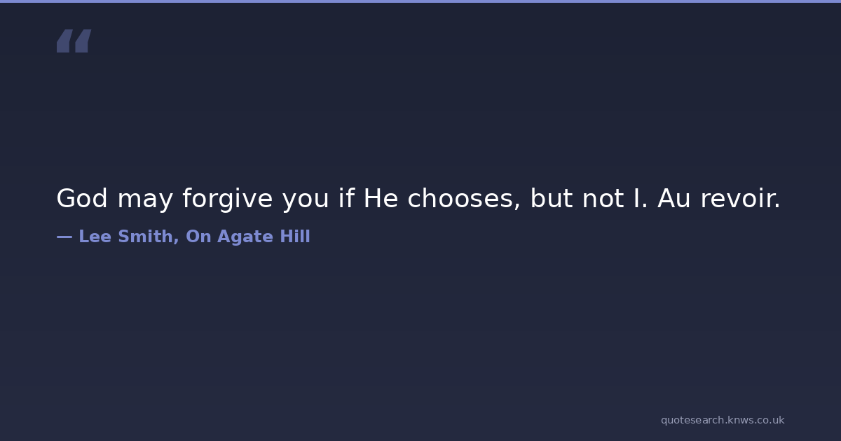 God may forgive you if He chooses, but not I. Au revoir. forgiveness mariah-rutherford-snow on-agate-hill snarky-remarks Download Image Share on X Share on Facebook Copy Link
