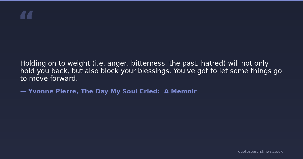 Holding on to weight (i.e. anger, bitterness, the past, hatred) will not only hold you back, but also block your blessings. You've got to let some things go to move forward.