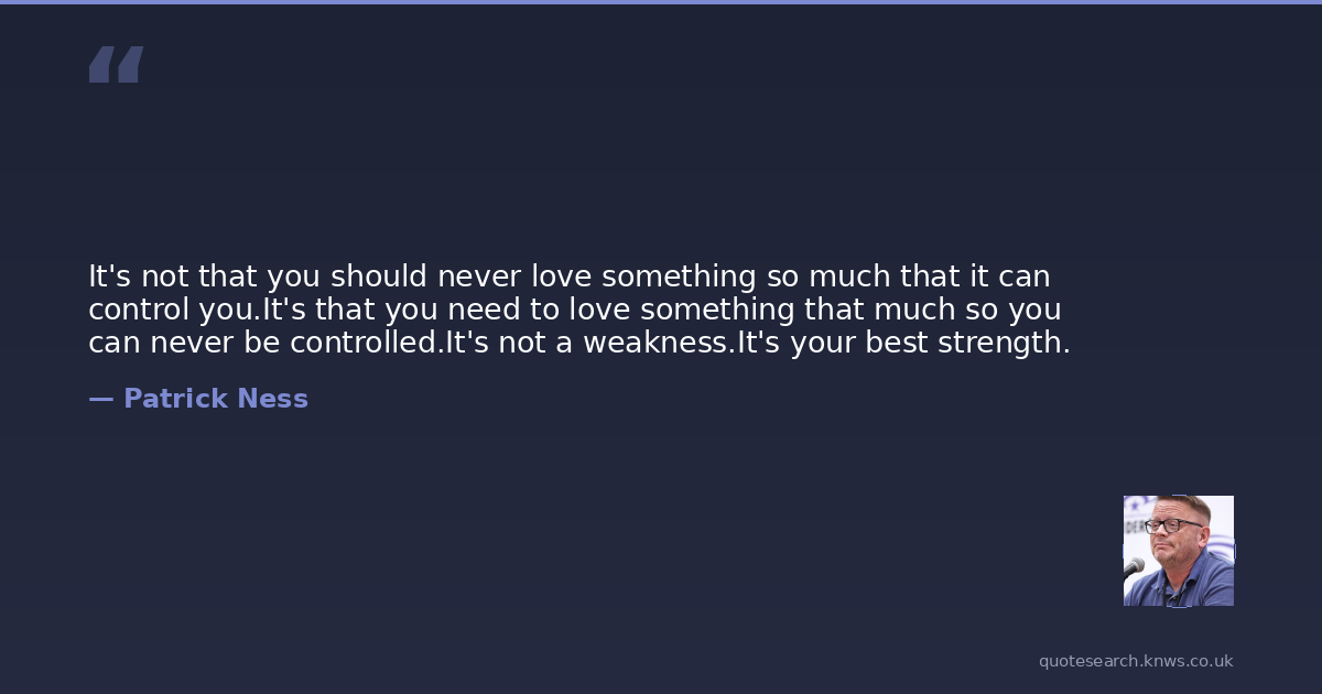 It's not that you should never love something so much that it can control you.It's that you need to love something that much so you can never be controlled.It's not a weakness.It's your best strength.