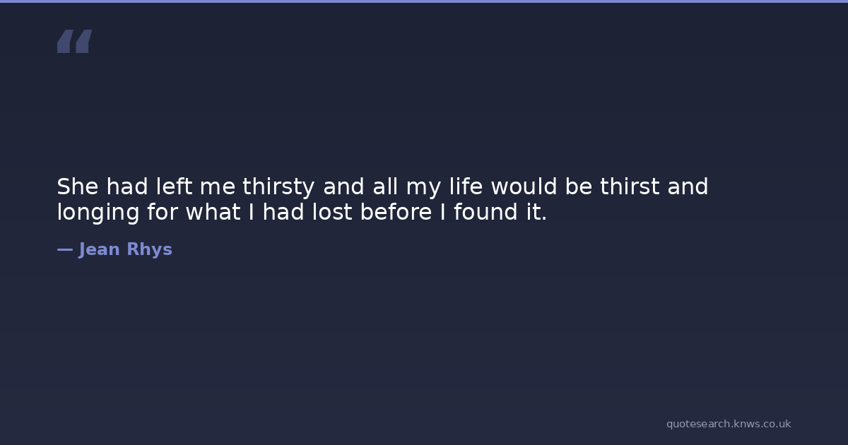 She had left me thirsty and all my life would be thirst and longing for what I had lost before I found it.