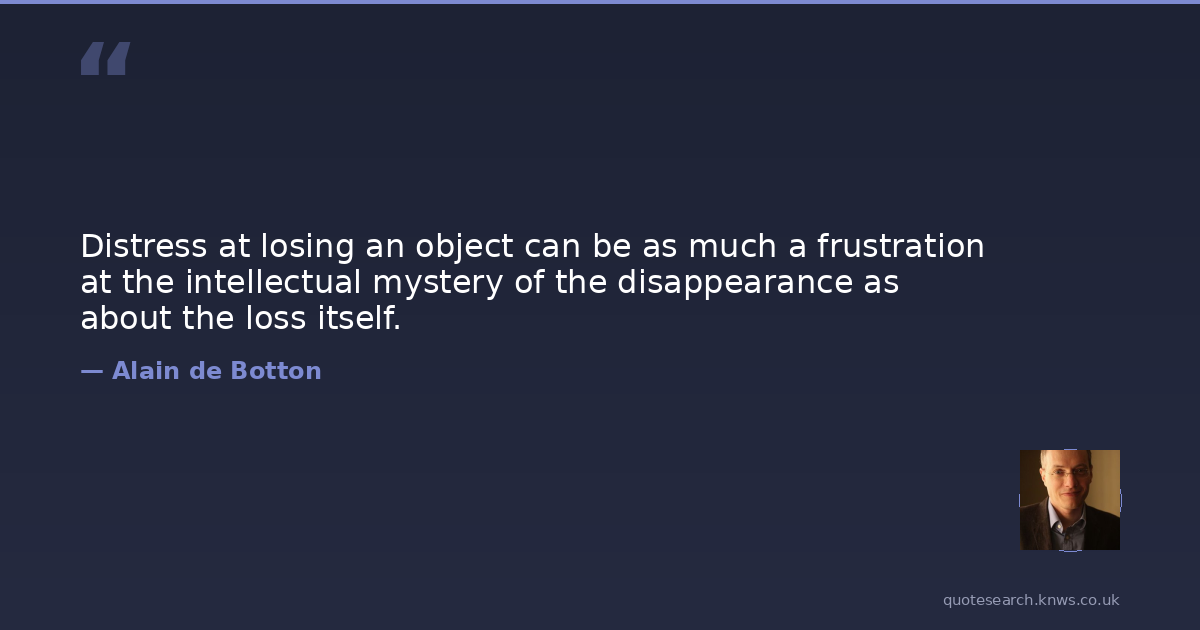 Distress at losing an object can be as much a frustration at the intellectual mystery of the disappearance as about the loss itself.