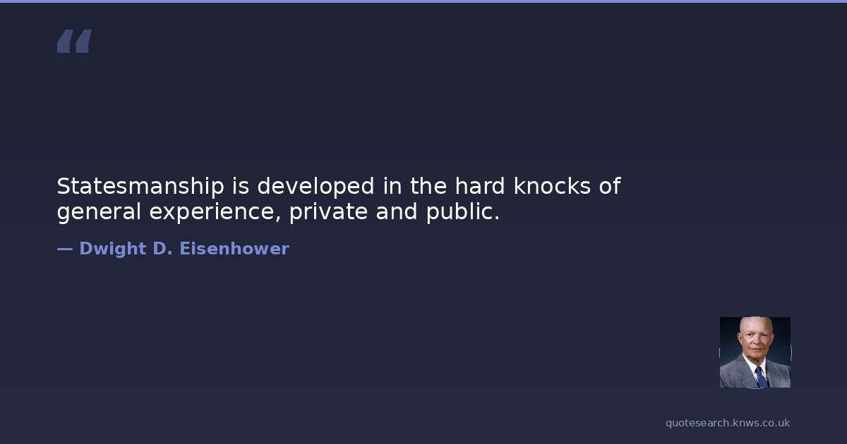 Statesmanship is developed in the hard knocks of general experience, private and public.