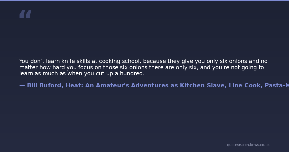 You don't learn knife skills at cooking school, because they give you only six onions and no matter how hard you focus on those six onions there are only six, and you're not going to learn as much as when you cut up a hundred.