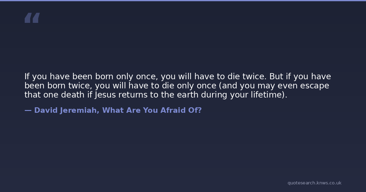 If you have been born only once, you will have to die twice. But if you have been born twice, you will have to die only once (and you may even escape that one death if Jesus returns to the earth during your lifetime).
