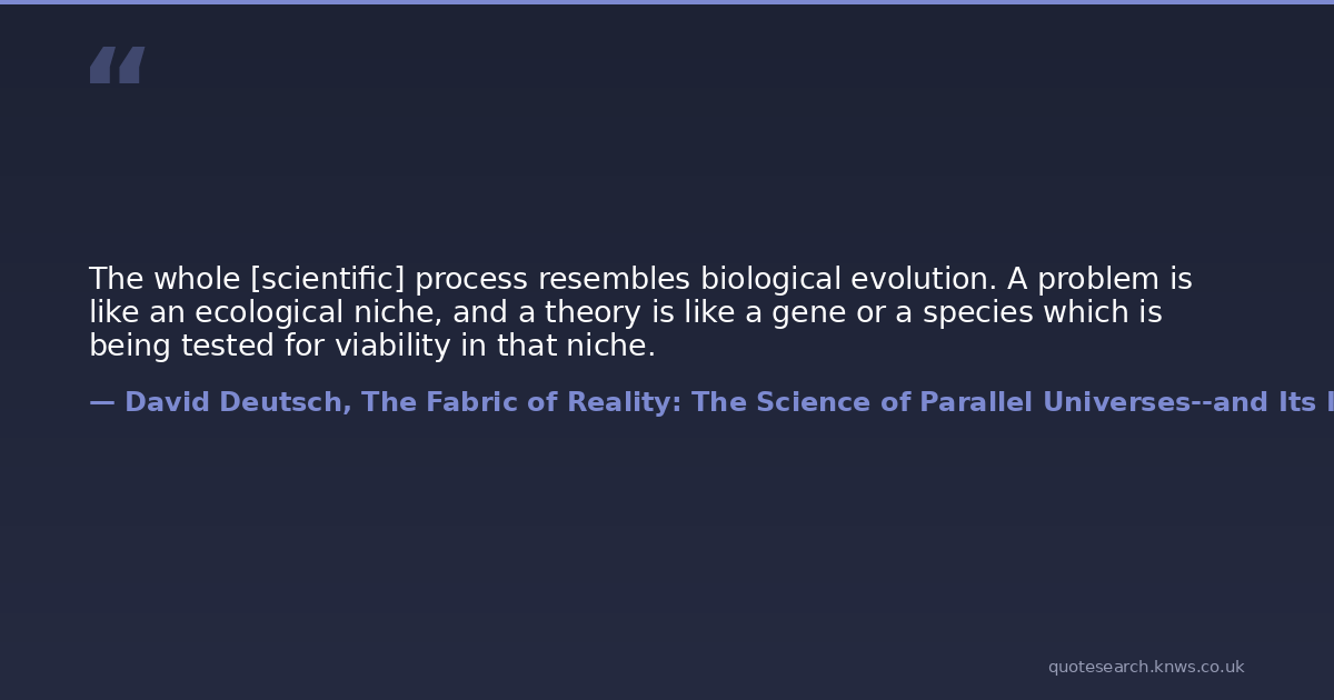 The whole [scientific] process resembles biological evolution. A problem is like an ecological niche, and a theory is like a gene or a species which is being tested for viability in that niche.