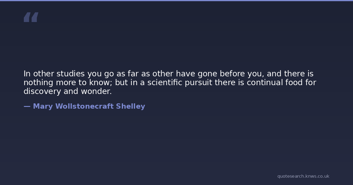 In other studies you go as far as other have gone before you, and there is nothing more to know; but in a scientific pursuit there is continual food for discovery and wonder.