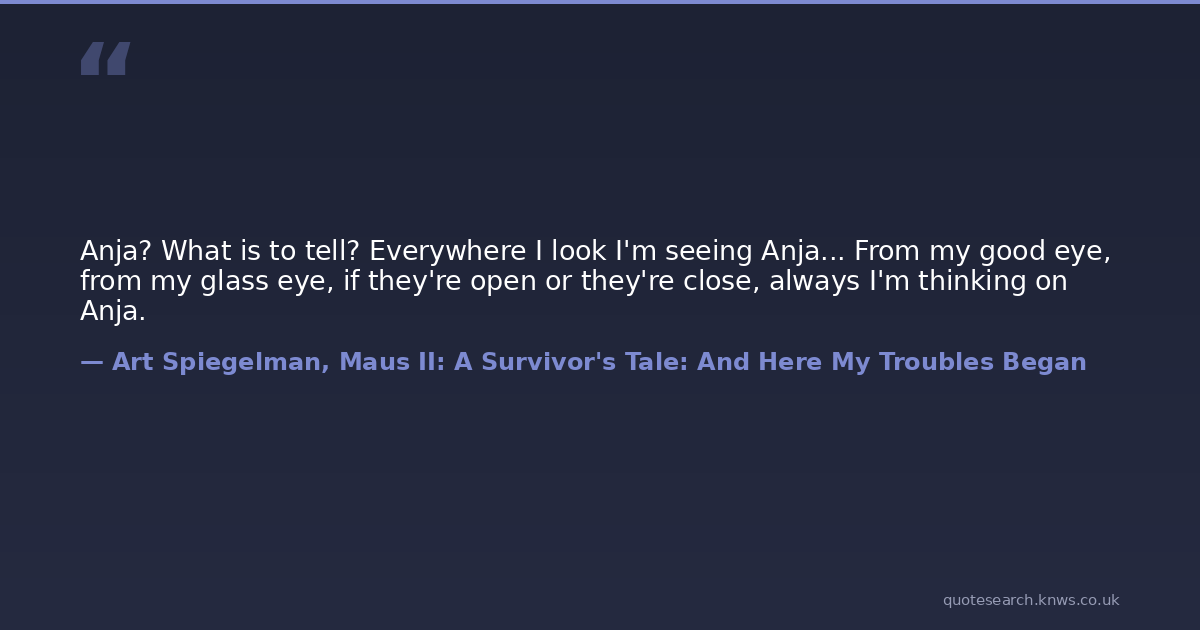 Anja? What is to tell? Everywhere I look I'm seeing Anja... From my good eye, from my glass eye, if they're open or they're close, always I'm thinking on Anja.