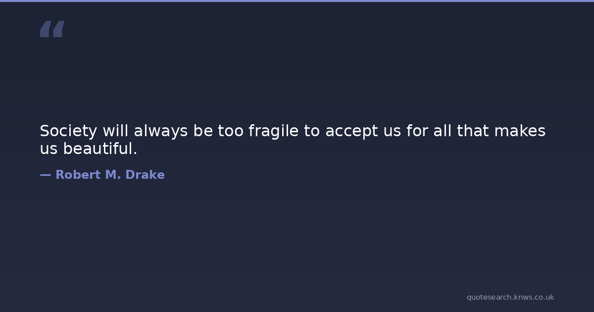 Society will always be too fragile to accept us for all that makes us beautiful.