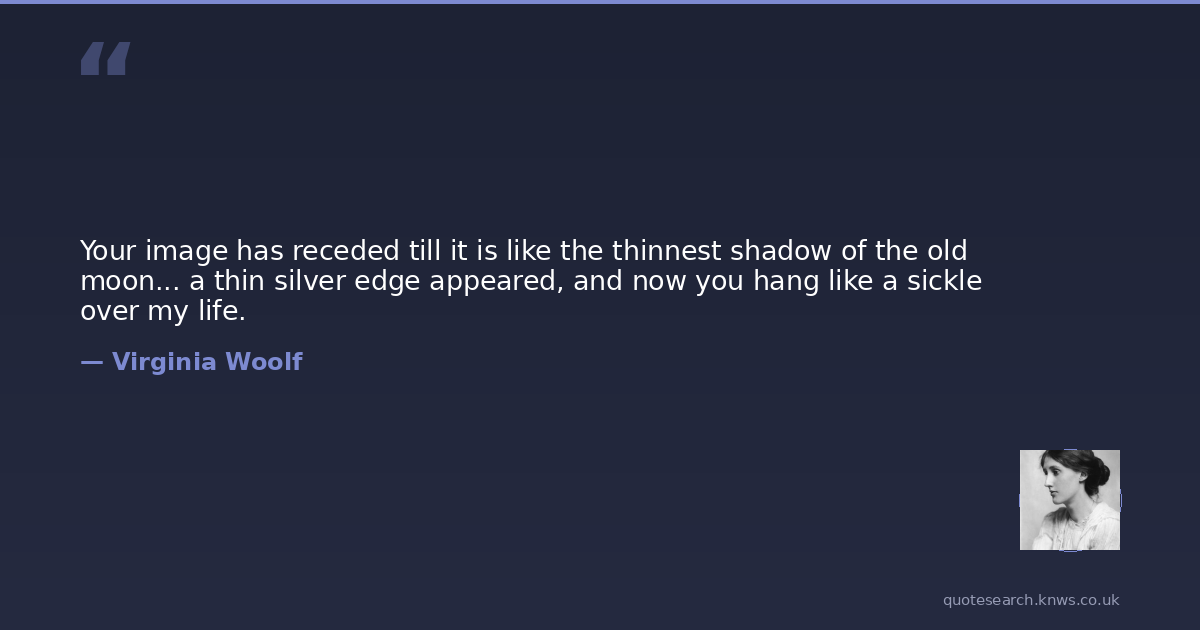 Your image has receded till it is like the thinnest shadow of the old moon... a thin silver edge appeared, and now you hang like a sickle over my life.