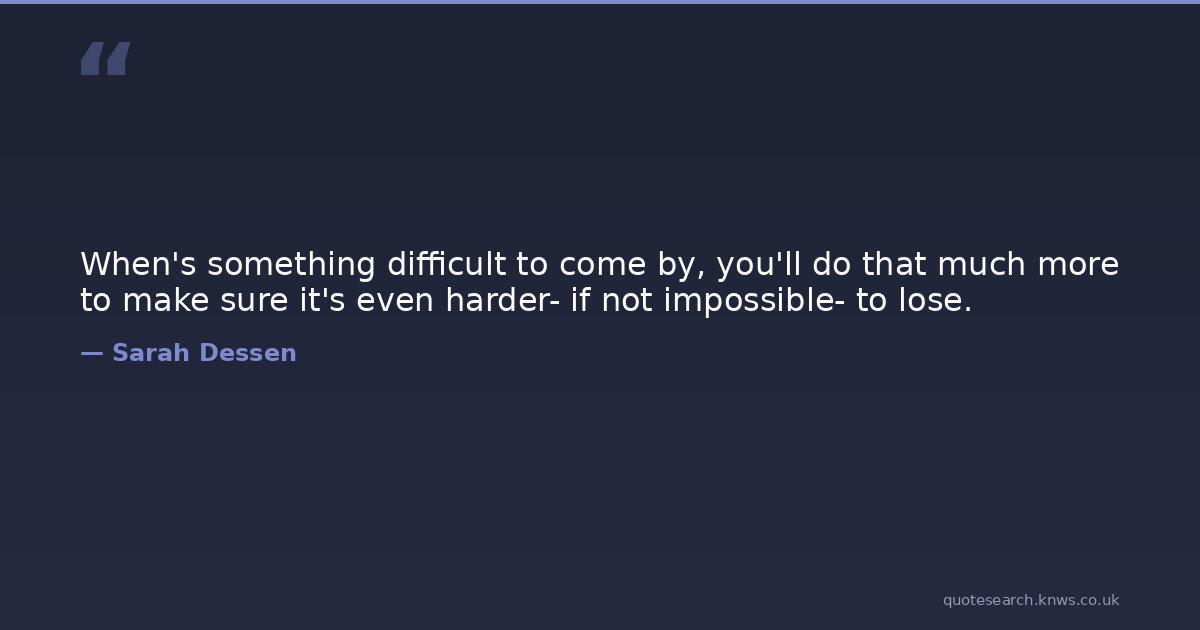 When's something difficult to come by, you'll do that much more to make sure it's even harder- if not impossible- to lose.