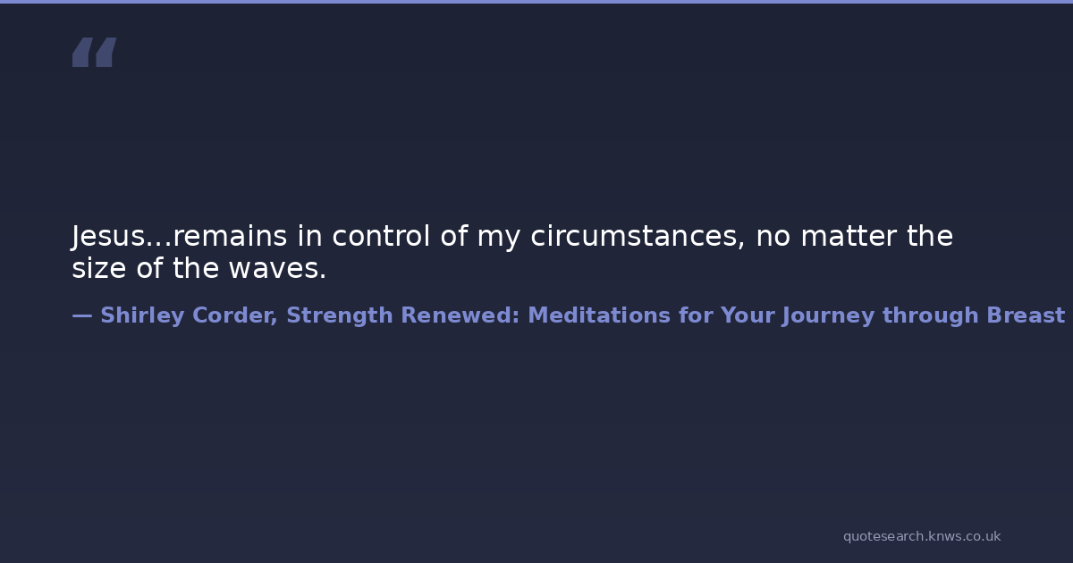 Jesus...remains in control of my circumstances, no matter the size of the waves.