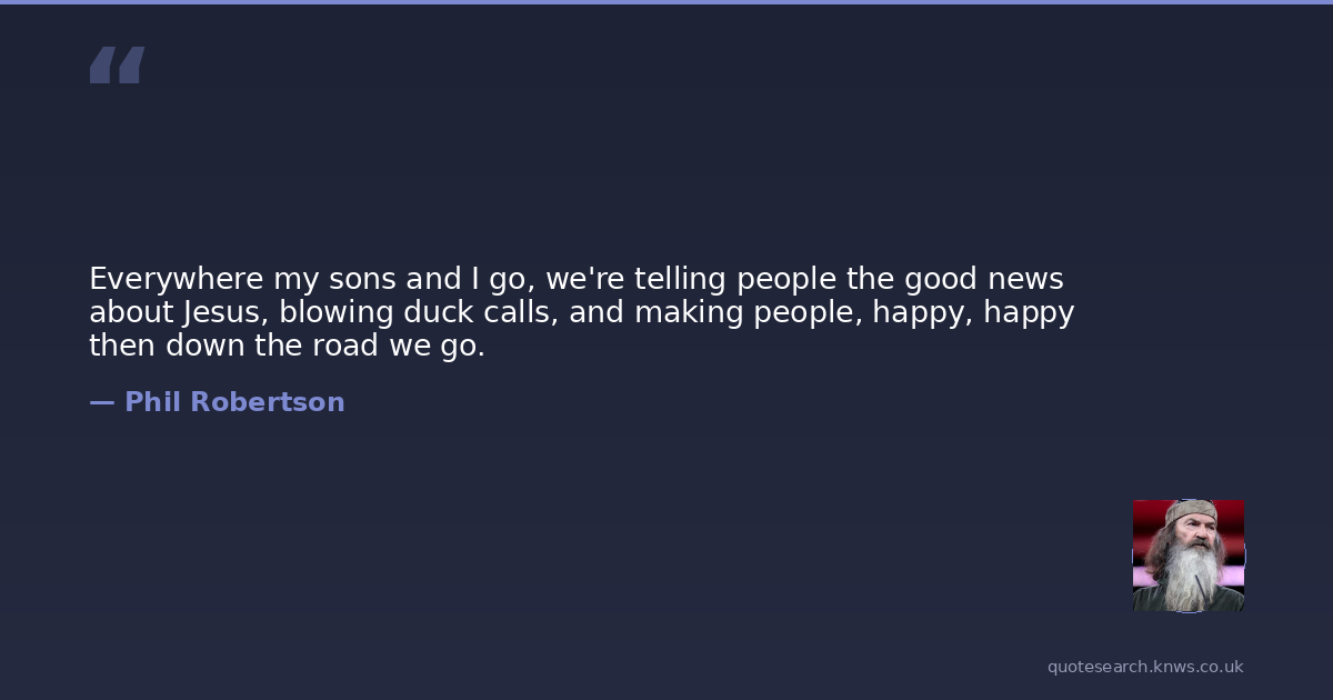 Everywhere my sons and I go, we're telling people the good news about Jesus, blowing duck calls, and making people, happy, happy then down the road we go.