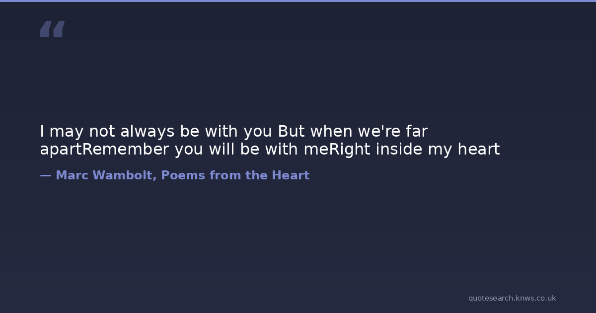 I may not always be with you But when we're far apartRemember you will be with meRight inside my heart