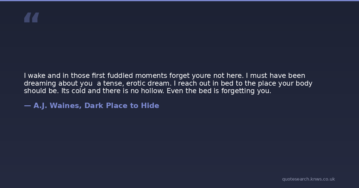I wake and in those first fuddled moments forget youre not here. I must have been dreaming about you a tense, erotic dream. I reach out in bed to the place your body should be. Its cold and there is no hollow. Even the bed is forgetting you.
